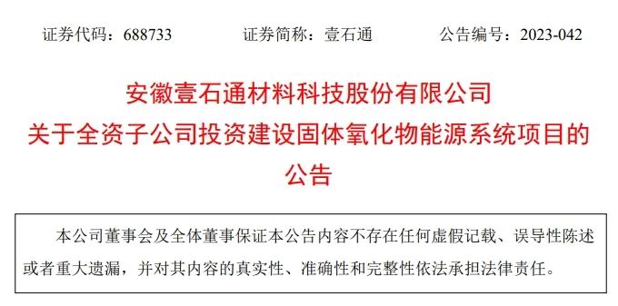 壹石通重磅出擊!擬投資12.1億建設1GW固體氧化物能源系統項目