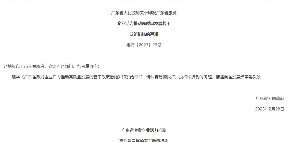 氫啟未來網獲悉,3月2日,廣東省人民政府發布關于印發廣東省激發企業活力推動高質量發展若干政策措施的通知。