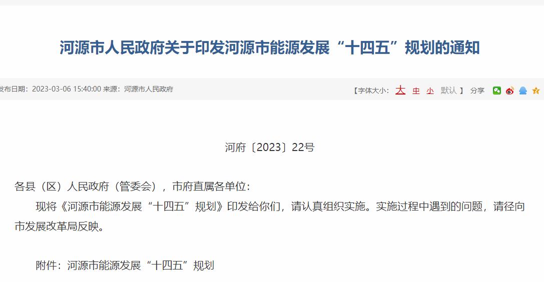 氫啟未來網獲悉,3月6日,河源市人民政府印發《河源市能源“十四五”規劃》