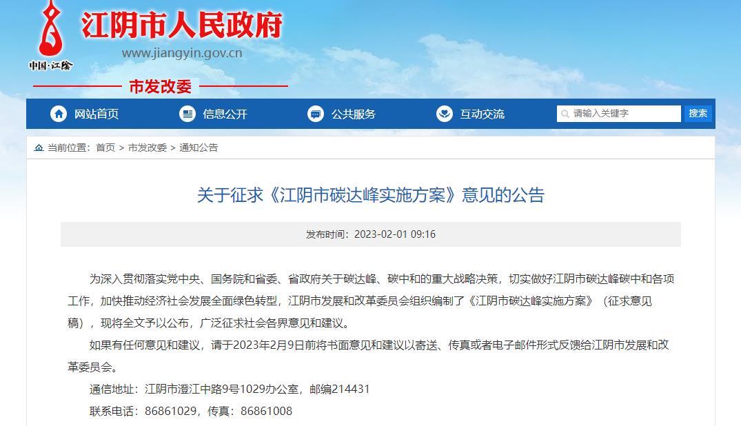 氫啟未來網獲悉,2月1日,為了切實做好江陰市碳達峰碳中和各項工作,加快推動經濟社會發展全面綠色轉型,江陰市發展和改革委員會發布《江陰市碳達峰實施方案》(征求意見稿)