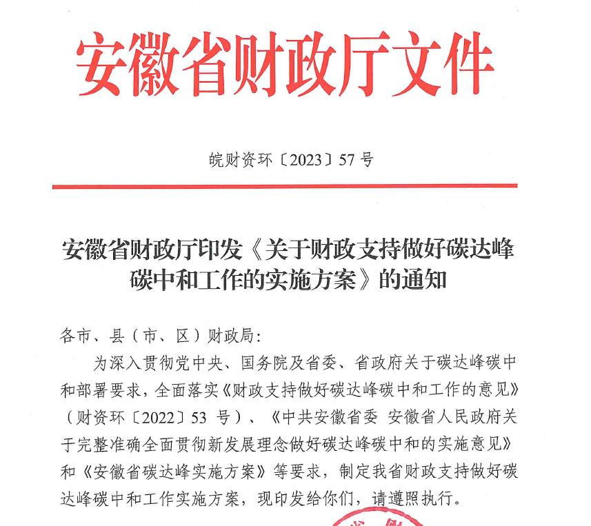 氫啟未來網獲悉,近日,安徽省財政廳印發《關于財政支持做好碳達峰碳中和工作的實施方案》