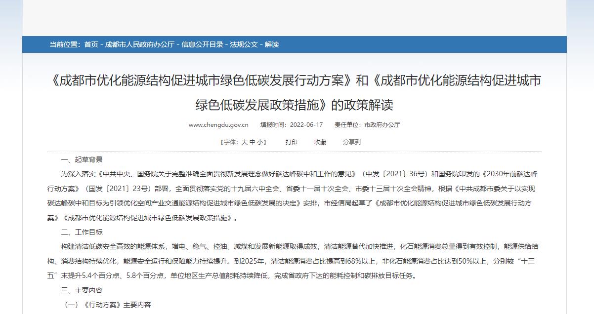 《成都市優(yōu)化能源結(jié)構(gòu)促進(jìn)城市綠色低碳發(fā)展行動方案》和《成都市優(yōu)化能源結(jié)構(gòu)促進(jìn)城市綠色低碳發(fā)展政策措施》的政策解讀