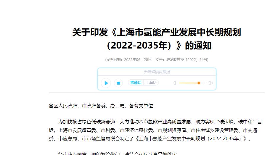 《上海市氫能產(chǎn)業(yè)發(fā)展中長期規(guī)劃 (2022-2035年)》印發(fā)!2025年規(guī)模突破1000億元