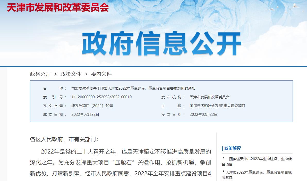2022年天津發布重點建設項目清單:多個鋰離子電池材料及氫能項目入選!