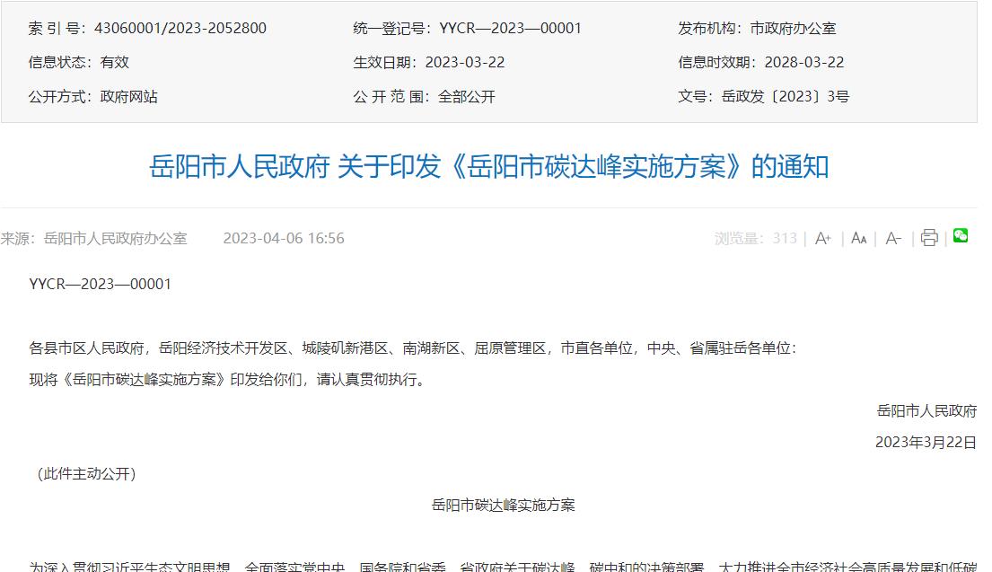 氫啟未來(lái)網(wǎng)獲悉,4月6日,岳陽(yáng)市人民政府辦公室發(fā)布關(guān)于印發(fā)《岳陽(yáng)市碳達(dá)峰實(shí)施方案》的通知