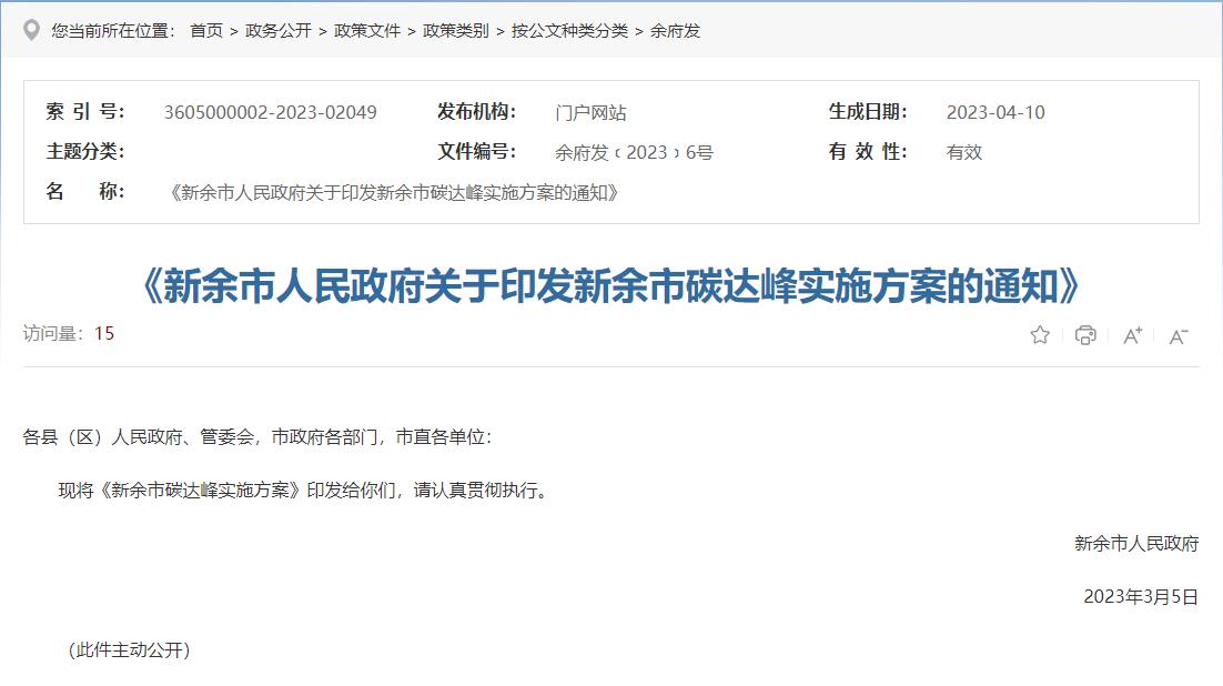 氫啟未來(lái)網(wǎng)獲悉,4月10日,新余市人民政府發(fā)布關(guān)于印發(fā)《新余市碳達(dá)峰實(shí)施方案》的通知
