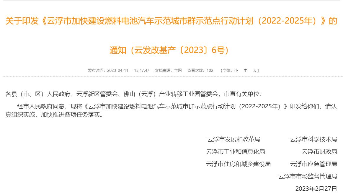 云浮發(fā)布加快建設(shè)燃料電池汽車示范城市群示范點(diǎn)行動(dòng)計(jì)劃