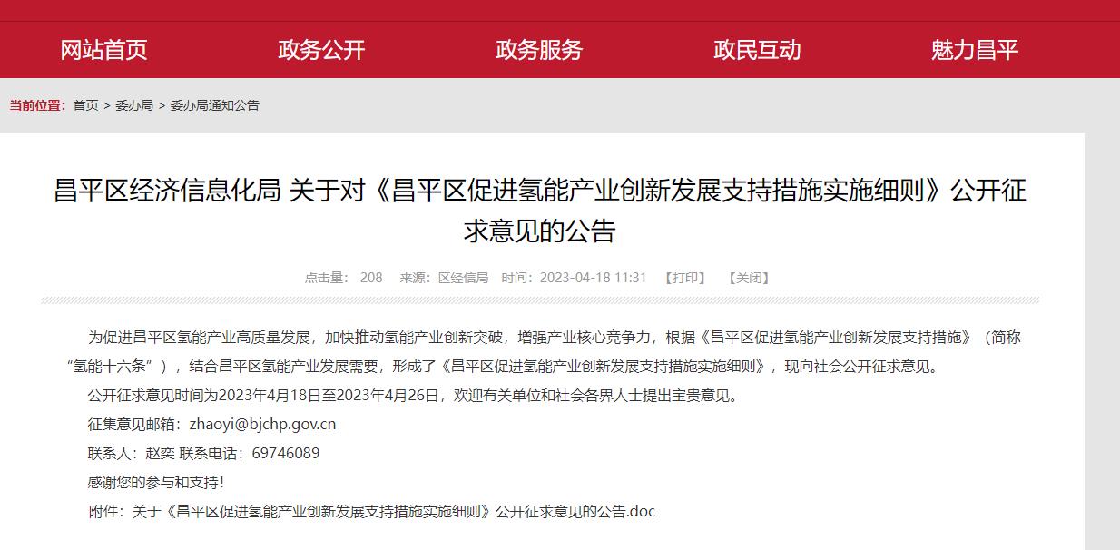 又發(fā)新政策!北京昌平昌平區(qū)促進(jìn)氫能產(chǎn)業(yè)創(chuàng)新發(fā)展支持措施實(shí)施細(xì)則