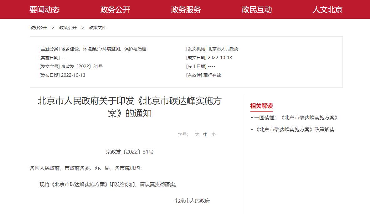 氫啟未來網獲悉,近日,北京市人民政府發布關于印發《北京市碳達峰實施方案》的通知