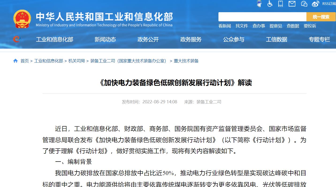 《加快電力裝備綠色低碳創(chuàng)新發(fā)展行動(dòng)計(jì)劃》官方解讀