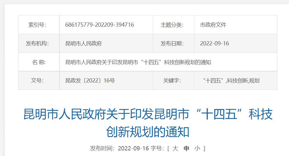 氫啟未來(lái)網(wǎng)獲悉,9月16日,昆明市人民政府發(fā)布關(guān)于印發(fā)昆明市“十四五”科技創(chuàng)新規(guī)劃的通知
