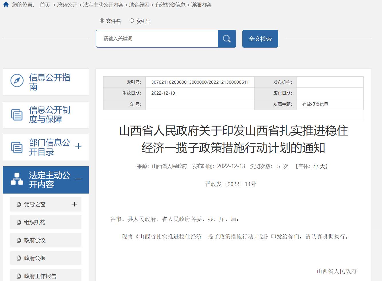 12月13日,山西省人民政府發(fā)布《山西省扎實推進穩(wěn)住經(jīng)濟一攬子政策措施的行動計劃》