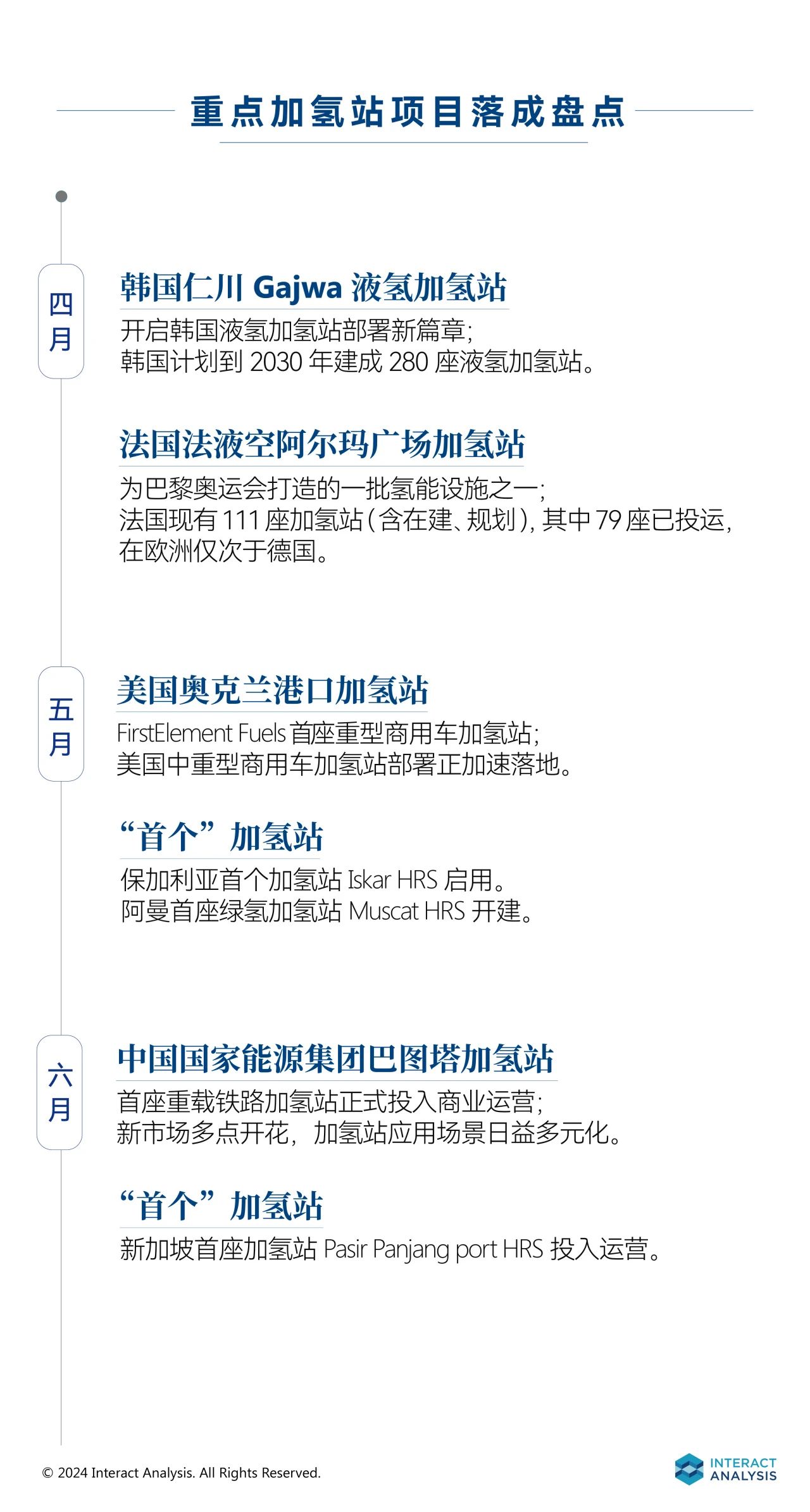 近年來,隨著氫能交通應用的推廣落地,加氫站建設日益緊迫。Interact Analysis 持續追蹤全球加氫站部署,據統計,截至2024年上半年,全球加氫站部署達到1,680座(含建成、在建及規劃),其中1,148座已建成投運。