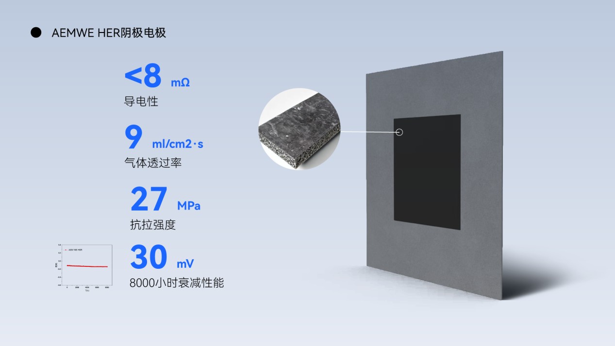 1. 陰極催化劑及陰極電極:200 mA/cm2的電流密度下70mV過電位、8000小時(shí)30 mV的衰減
