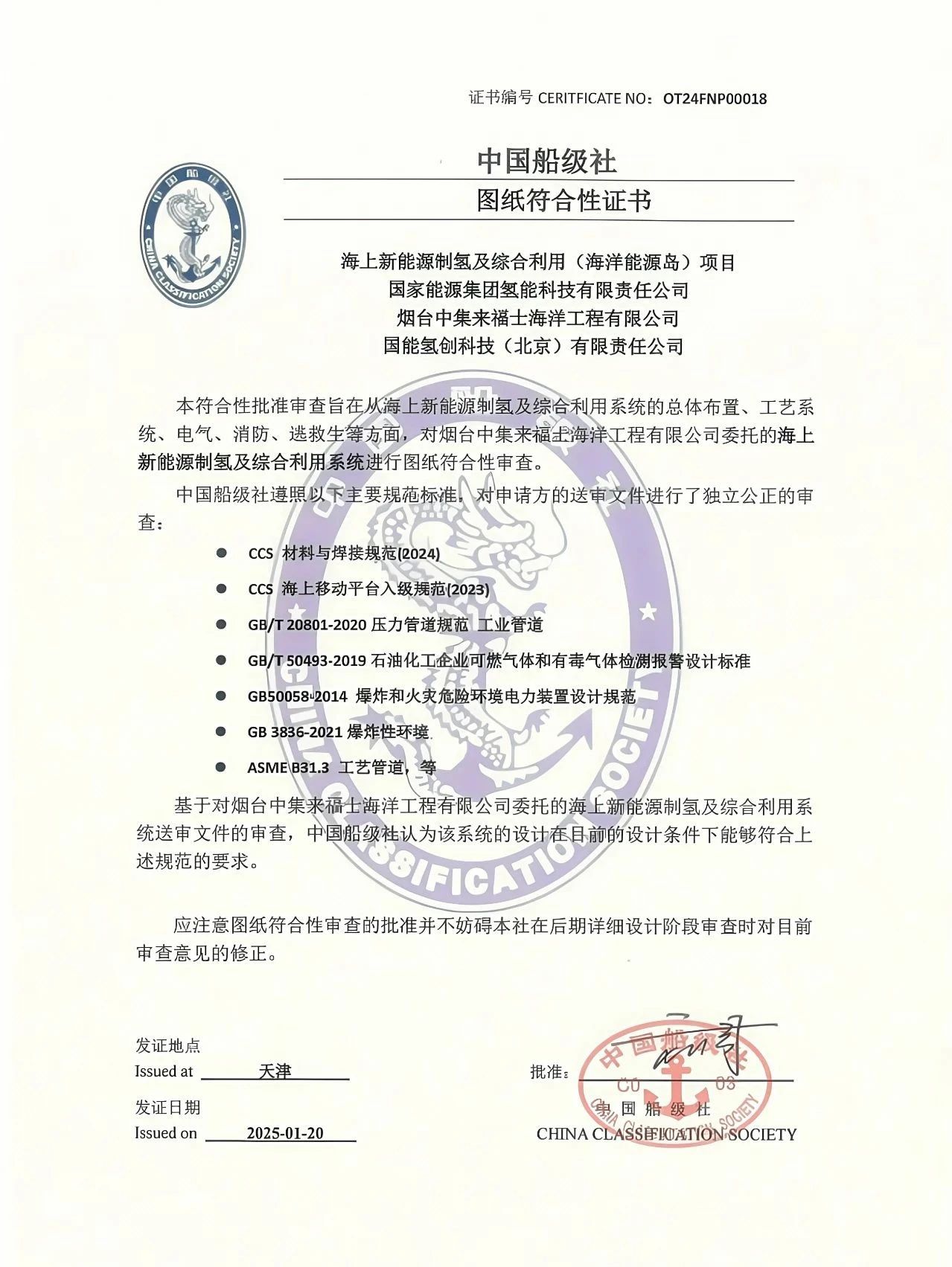 國(guó)內(nèi)首個(gè)海洋氫能制儲(chǔ)輸用全鏈條實(shí)證示范項(xiàng)目通過(guò)中國(guó)船級(jí)社審查