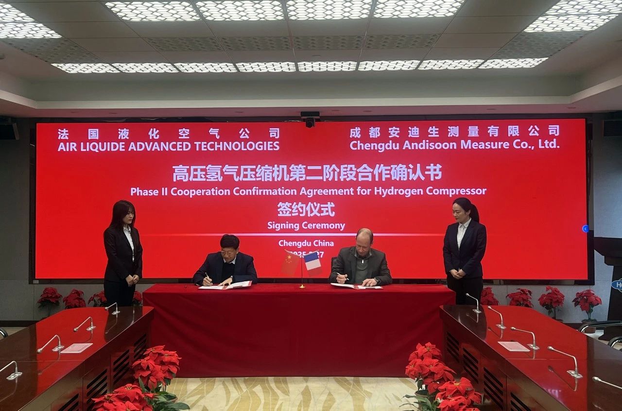 2月27日,厚普股份全資子公司成都安迪生測量有限公司(以下簡稱“安迪生”)與法國液化空氣集團(tuán)(以下簡稱“法液空”)簽署合作確認(rèn)書,正式啟動高壓氫氣液驅(qū)壓縮機(jī)研發(fā)項目第二階段合作。此次合作依托“國際研發(fā)+中國智造”協(xié)同模式,由法液空提供領(lǐng)先技術(shù)方案,安迪生負(fù)責(zé)產(chǎn)業(yè)化推進(jìn)。此舉標(biāo)志著雙方在氫能高端裝備領(lǐng)域的合作進(jìn)入加速新階段。