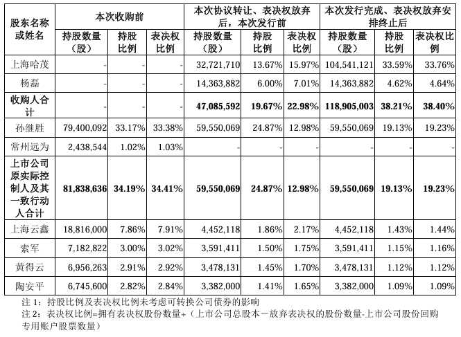 3月17日,永安行發(fā)布公告,哈啰集團(tuán)聯(lián)合創(chuàng)始人兼CEO楊磊將通過(guò)其控制的上海哈茂,成為永安行新的實(shí)際控制人。公告說(shuō)明,上海哈茂擬通過(guò)協(xié)議轉(zhuǎn)讓方式受讓孫繼勝、常州遠(yuǎn)為、索軍、陶安平、黃得云持有的永安行的13.67%股份,哈啰集團(tuán)聯(lián)合創(chuàng)始人兼CEO、上海哈茂實(shí)際控制人楊磊擬通過(guò)協(xié)議轉(zhuǎn)讓方式受讓上海云鑫持有的永安行的6.00%股份,楊磊將合計(jì)持有永安行19.67%股份。同時(shí),上海哈茂擬以現(xiàn)金認(rèn)購(gòu)上市公司向特定對(duì)象發(fā)行的71819411股股票。永安行原實(shí)際控制人孫繼勝將放棄其持有的上市公司13.77%股份的表決權(quán)。具體變動(dòng)如下。
