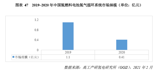 從市場規模來看,2020年國內氫循環系統的市場規模預計為0.41億元,同比2019年下降了63%,下降原因主要是出貨量減少和氫循環泵價格的下降。