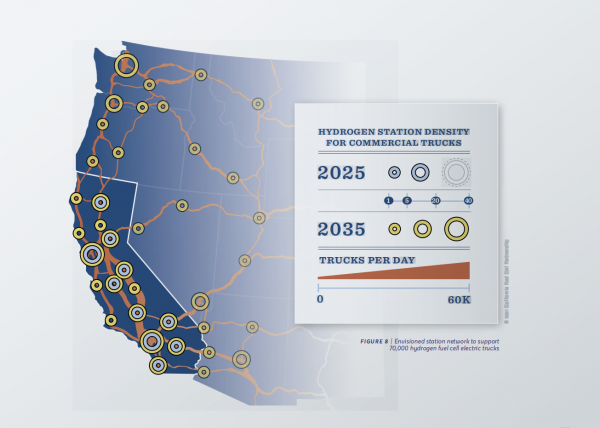 加州燃料電池伙伴關(guān)系(CaFCP)發(fā)布了一份新的8級(jí)重型燃料電池卡車文件,名為《燃料電池電動(dòng)卡車:加州及其他地區(qū)貨運(yùn)活動(dòng)的愿景》(Fuel Cell Electric Trucks: a Vision for Freight Activities in California and beyond),該文件設(shè)想,到2035年,將有200個(gè)加氣站支持7萬輛重型氫動(dòng)力卡車(fcets)。