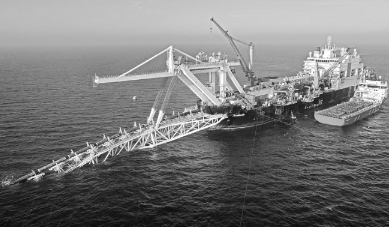 這是2018年11月15日的資料照片,顯示北溪2號項(xiàng)目的天然氣管道正在鋪設(shè)到波羅的海德國水域的海床。