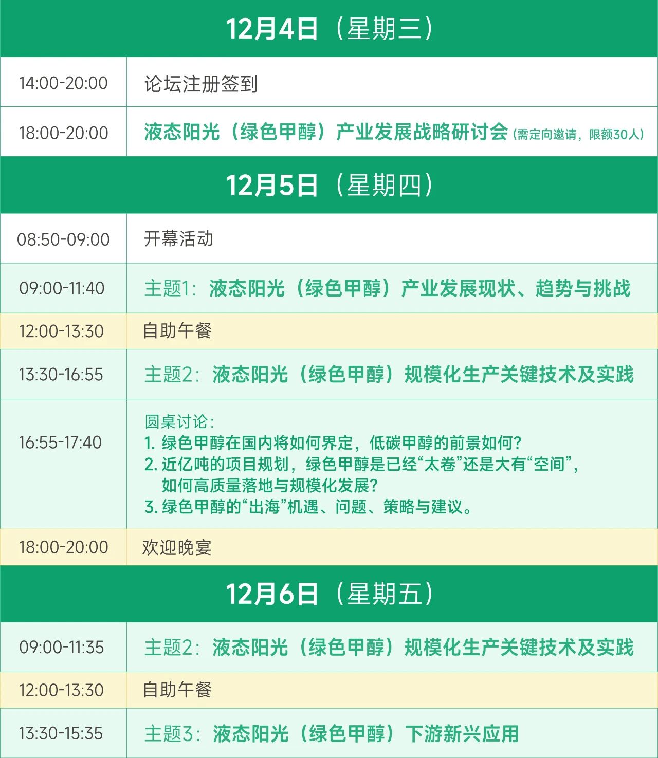 論壇信息 主辦單位:液態陽光、DT新能源 支持單位:鄂爾多斯實驗室 承辦單位:寧波德泰中研信息科技有限公司 媒體支持:DT新材料、DT氣體分離、海洋清潔能源資訊、生物基能源與材料、北極星氫能網、氫能和燃料電池、氫啟未來網、生物燃料與生物基化學品、氫眼探索、氫風明月、低碳化學與化工、潔凈煤技術、明輝說油 鳴謝單位:電堆科技(合肥)有限公司、上海慕帆動力科技有限公司、艾默生過程控制有限公司、浙江氫邦科技有限公司 論壇日程 完整議程詳情點擊:議程發布!20+院士專家大咖共探:液態陽光(綠色甲醇)產業現在與未來 論壇展區 液態陽光上中下游產業鏈關鍵技術、設備及解決方案供應商 參會/贊助/展臺咨詢 掃碼提交注冊信息 參會 | 贊助 | 需求對接 沈經理 13396601161(微信同號) 張經理 18158245172(微信同號)