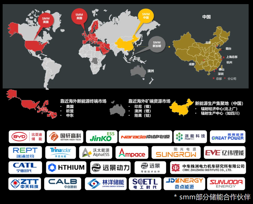 上海有色網信息科技股份有限公司(SMM)是全球知名的有色金屬行業綜合服務門戶,提供包括金屬和采礦行業的基準價格、分析、資訊、咨詢和會展等服務。在全球有色、黑色和電動汽車金屬行業有廣泛的客戶群體,影響力覆蓋工商業儲能絕大多數群體。