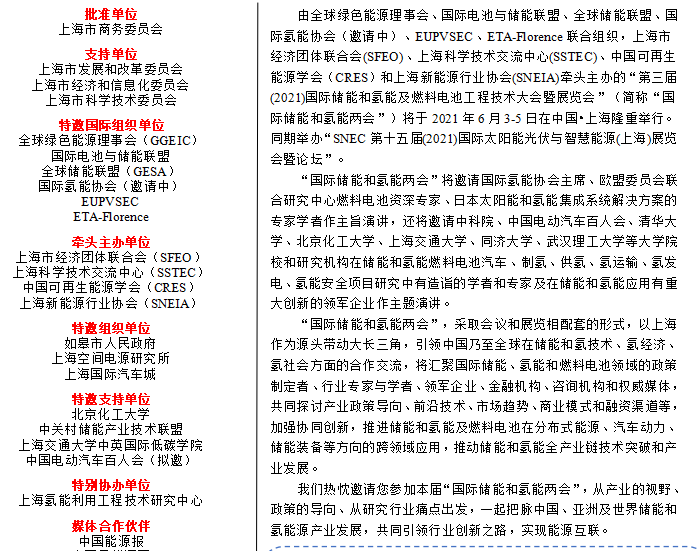 [ 導讀 ]第三屆(2021)國際儲能和氫能及燃料電池工程技術大會暨展覽會