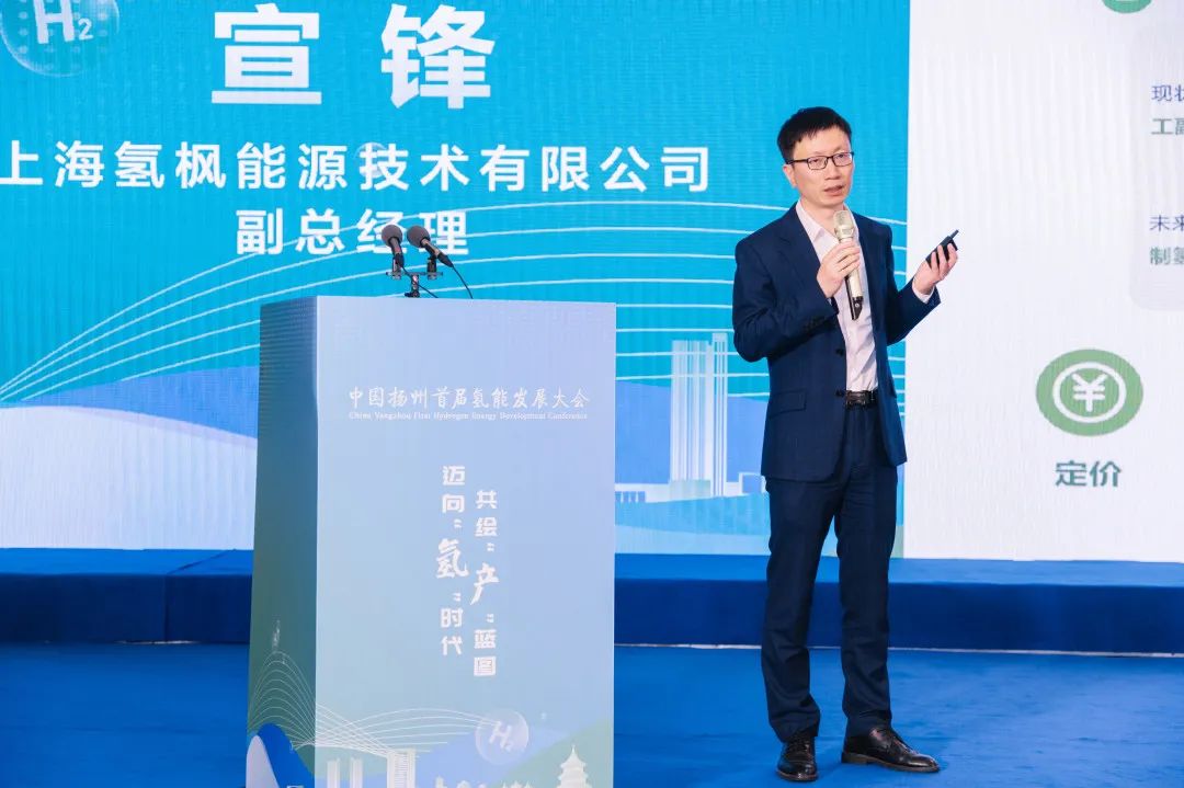 揚州甁布氫云新能源科技股份有限公司CEO陳碩分享了《氫舟——船用氫能輪機系統》主題演講,陳總表示揚州地理位置優越,可成為京杭大運河與長江中游上最好的加氫點。