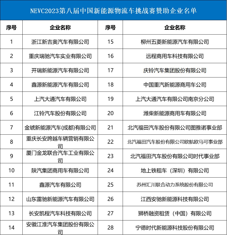 至此,NEVC2023第八屆中國新能源物流車挑戰賽暨2023中國新能源物流車大會圓滿落幕?;顒拥某晒εe行,離不開參賽車企和地上鐵、匯川聯合動力、安馳科技、獅橋融資租賃(中國)有限公司和寧德時代新能源科技股份有限公司等企業的贊助和支持。