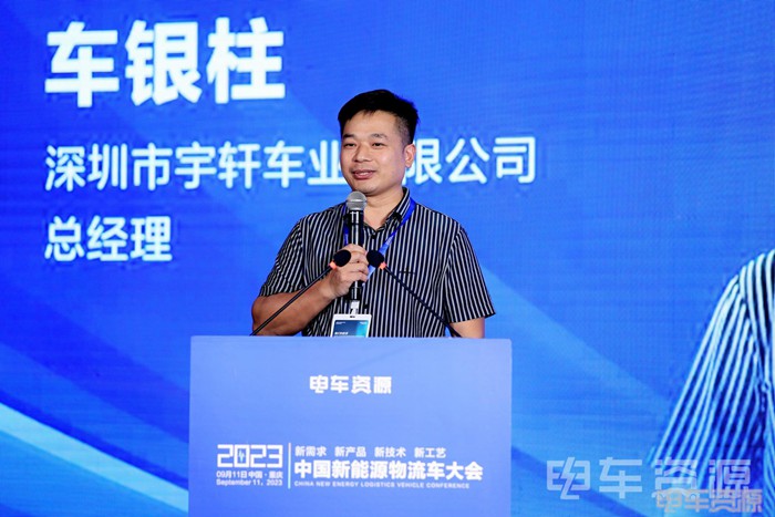 深圳市宇軒車業有限公司總經理車銀柱謙稱自己是草根創業,分享了《非換道,是絕壁求生》主題演講。他介紹了自己在新能源物流車運營模式創新的獨家經歷,認為無論做經銷運營商,還是兼著做運力業務,其實并非換道,而是為了絕處求生?!拔覀円恢痹诜湛蛻?,滿足客戶需求,創新服務模式?!避囥y柱表示,行業無論如何變革,服務好客戶、滿足客戶需求就能獲得一線生機。