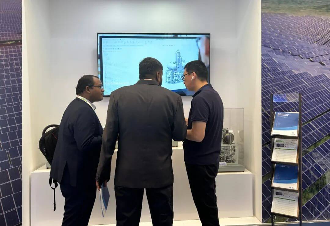 展會(huì)期間,眾多行業(yè)專家參觀了天合元?dú)湔古_(tái),并作深入交流。他們表示,經(jīng)濟(jì)和社會(huì)發(fā)展需要全面、深度的脫碳,氫能因其得天獨(dú)厚的優(yōu)勢(shì),成為新的發(fā)展方向。光伏與氫能的結(jié)合,不僅能夠有效解決可再生能源電力的存儲(chǔ)和使用,更重要的是氫能產(chǎn)業(yè)也可以借此良機(jī)實(shí)現(xiàn)脫碳成為綠色氫能,并且肯定了天合元?dú)湓跉淠茴I(lǐng)域的研發(fā)能力和場(chǎng)景落地能力。希望天合元?dú)湟跃G氫制備的商業(yè)價(jià)值為推動(dòng)力,以多元化、大規(guī)模商業(yè)示范應(yīng)用為龍頭拉動(dòng),帶動(dòng)綠色氫能全產(chǎn)業(yè)鏈發(fā)展。