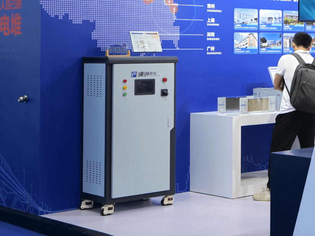 展會現場,驥翀氫能重點展出了MH系列電堆、備用電源和核心零部件等多款產品。