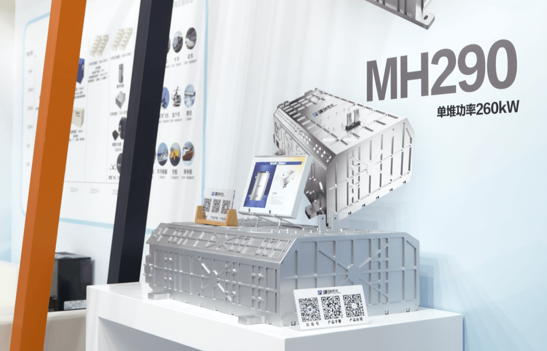 本次參展的MH170電堆,單堆功率為5-216kW,裸堆功率密度4.7kW/L,可實現-39°C無輔助啟動,相關技術參數處于行業一流水平。該產品基于整車需求進行創新性設計,目前已在重卡、環衛車、客車、冷鏈物流車等燃料電池車型進行了應用驗證。