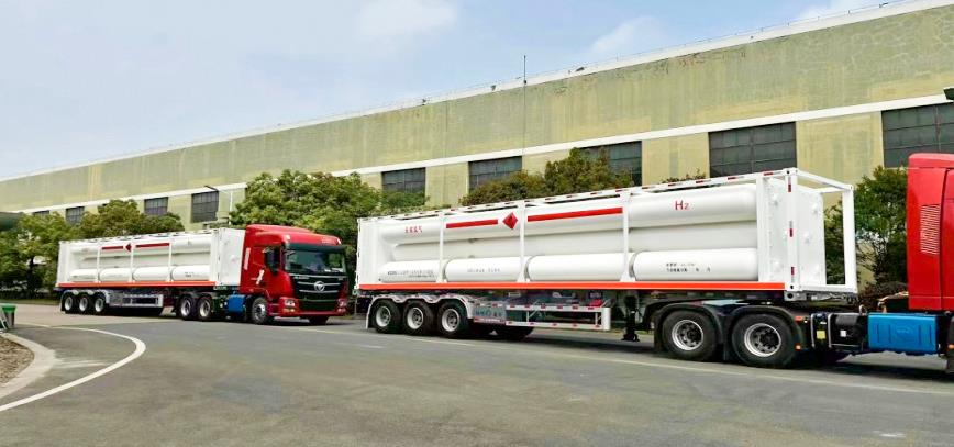浙江藍能設計制造的氫氣長管拖車是氫能儲運市場主流產品。
