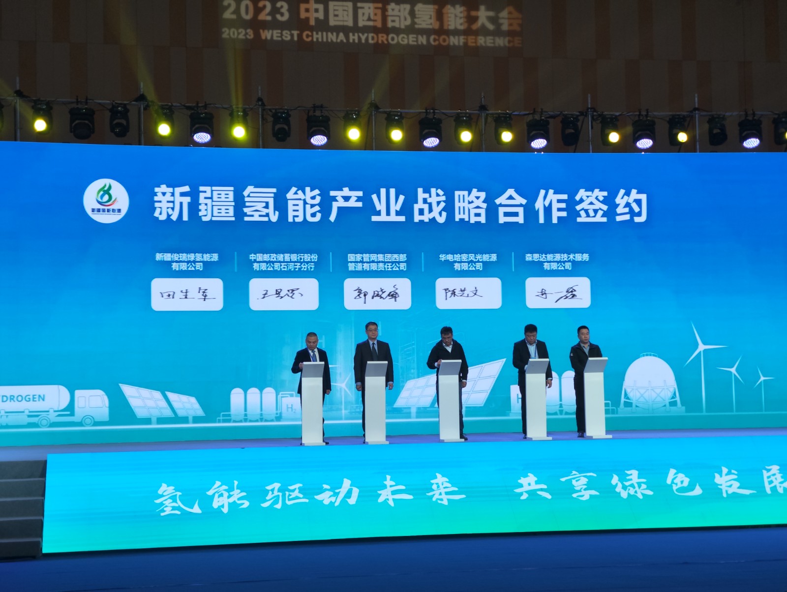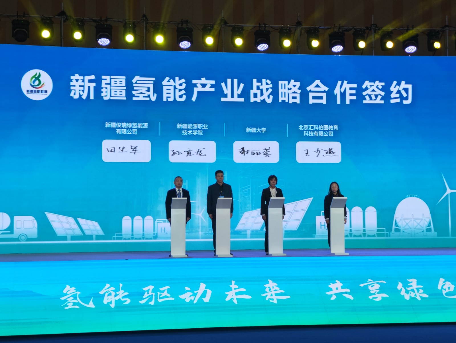 為進一步推動新疆氫能示范項目的落地實施,促進資源共享、優勢互補、互惠互利、合作共贏,主題演講后,新疆氫能產業發展聯盟與中關村氫能與燃料電池技術創新產業聯盟、深圳市氫能與燃料電池協會簽訂戰略合作協議;中國郵政儲蓄銀行股份有限公司石河子分行與新疆俊瑞綠氫能源有限公司簽訂新疆氫能產業發展聯盟會員單位戰略合作協議;新疆大學與新疆能源職業技術學院、新疆俊瑞綠氫能源有限公司與北京匯科伯圖教育科技有限公司簽訂產教融合共同體協議。