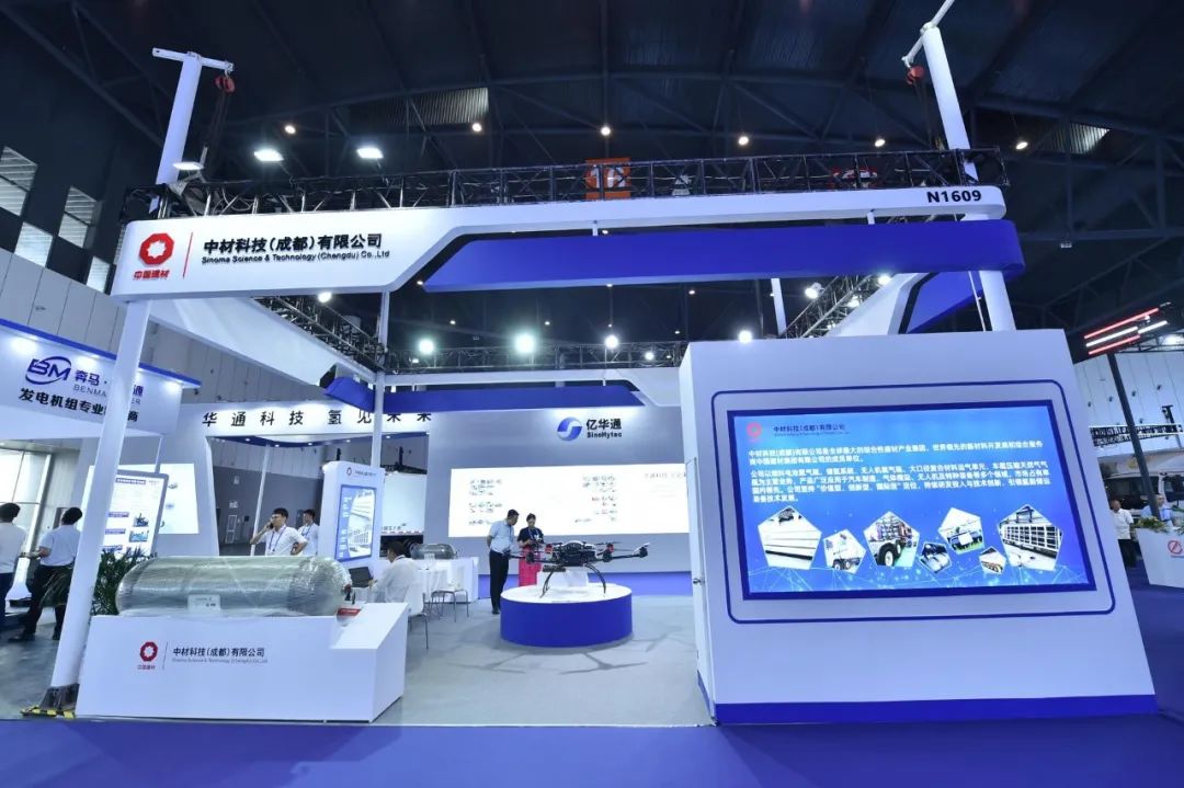 中材科技(成都)有限公司現(xiàn)場展示了385L大容積車用燃料電池儲氫氣瓶和無人機儲氫氣瓶。