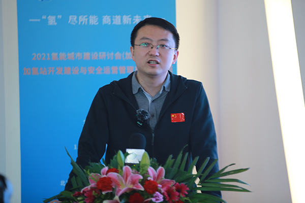 授課環(huán)節(jié),北京市城市管理委員會左磊博士首先做了“北京市加氫站規(guī)劃建設(shè)運營管理基本情況”的主旨發(fā)言,他從加氫站建設(shè)背景、發(fā)展?fàn)顩r、發(fā)展規(guī)劃、政策要求等方面進(jìn)行了講解,并重點介紹了油氫合建站審批流程。