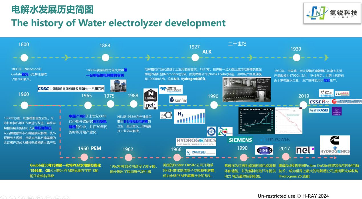 1996年以來,美國的Proton OnSite公司開始與聯合技術航空航天系統合作,為航空航天和海軍開發和制造質子交換膜電解槽,成為全球PEM電解槽行業的龍頭。