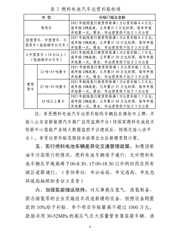 濰坊市《關(guān)于支持氫能產(chǎn)業(yè)發(fā)展的若干政策(征求意見稿)》全文:
