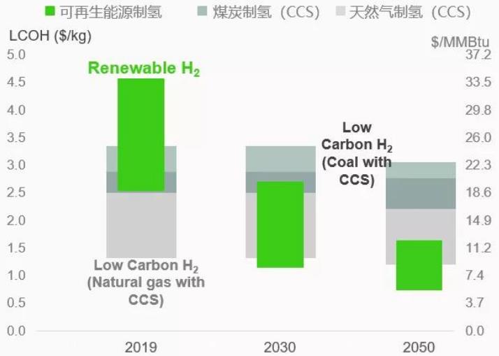 2020-2050多種制氫技術(shù)的成本對比