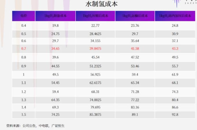 以大工業電價均價0.61元/kWh計算,當前電解水制氫的成本為3.69元/立方米。當用電價格低于0.50元/kWh時,電解水制備的氫氣成本可與汽油相當 [1]。