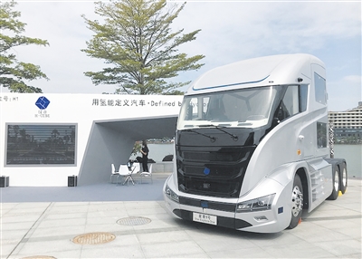 廣東漢合汽車技術有限公司自動駕駛氫燃料電池重卡亮相展會。