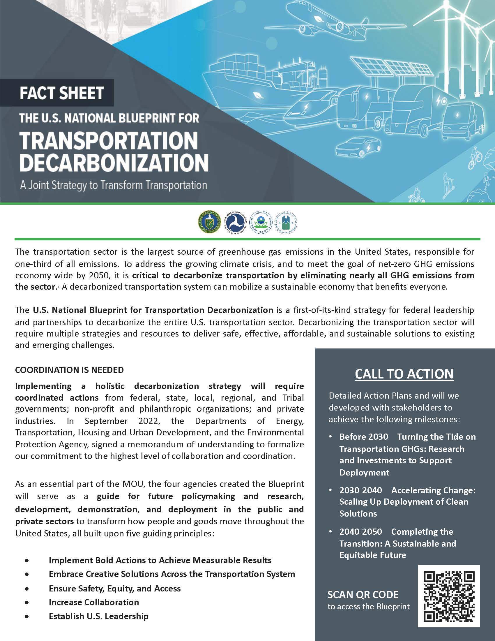 該藍圖是第一個全面的、全政府的交通部門去碳化的方法,旨在統一各機構的決策并確定新的合作機會。