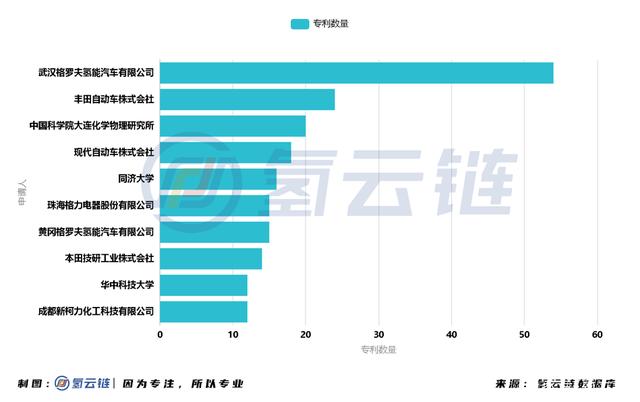 從專利價值來看,格羅夫排名第一;豐田汽車排名第二;中科院大連化物所排名第三;現代汽車、同濟大學、格力電器、華中科技大學、成都新柯力化工排名依次靠后。