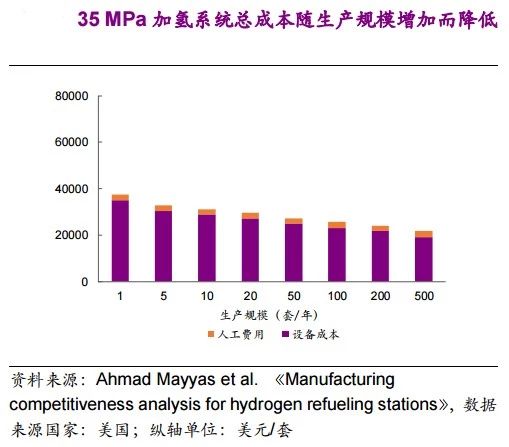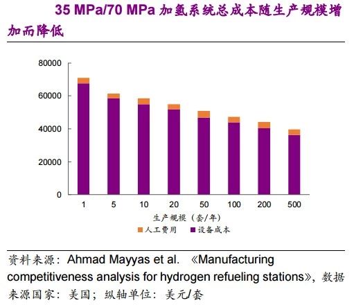 隨著生產(chǎn)規(guī)模從10套/年增加到500套/年,加氫系統(tǒng)總成本可降低30%-35%。