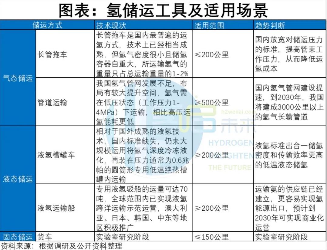 同時,為滿足氫能發展后期長距離、大規模運輸需求,行業將持續推動低溫液氫儲運產業化應用,探索有機液體、固態等儲運方式應用,整體發展將呈現“氣態到多相態”的發展趨勢。