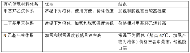 國內的主要研究方向在甲基環(huán)己烷體系、乙基咔唑體系和二芐基甲苯體系等儲氫介質,這三種介質分別有以下特點: