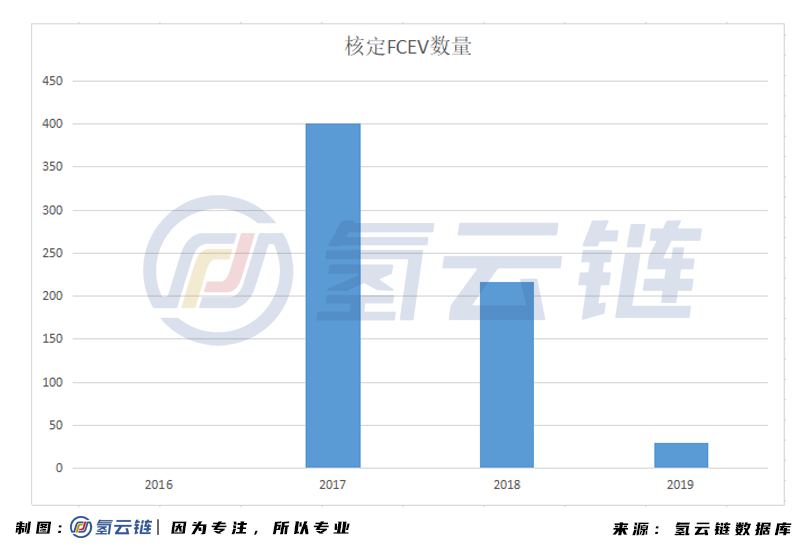 至此,2016-2019年度新能源汽車推廣應用中共核定燃料電池汽車為646輛。總補貼金額達到3.225億元。其中2016年為0輛;2017年為400輛;2018年為216輛;2019年為30輛;
