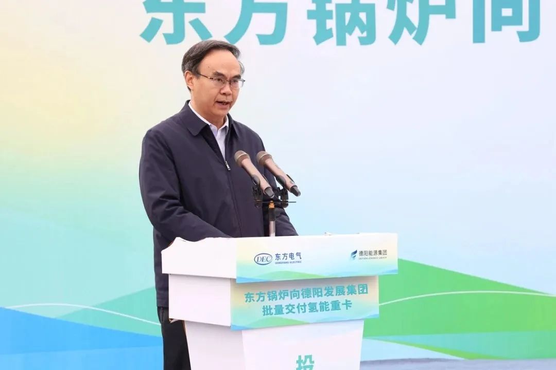 林光平在致辭中指出,此次向德陽發展集團批量交付氫能重卡,是德陽市和東方鍋爐貫徹習近平總書記視察四川時做出的“水風光氫協同發展”的重要指示精神的具體體現,是德陽市委市政府大力支持東方鍋爐氫能裝備技術在德陽推廣示范應用的具體行動。本次東方鍋爐向德陽發展集團批量交付的氫能重卡,體現了德陽市委市政府和德陽發展集團對東方鍋爐氫能技術與裝備的高度認可,是德陽推進氫能先進技術與裝備應用拓展的重要里程碑。東方鍋爐深耕氫能10余年,掌握了氫獲取、氫儲存、氫加注、氫應用全產業鏈技術,在德陽基地建成了全球第一個氫能全產業技術應用示范園。東方鍋爐將在德陽市委市政府的支持下,加強與氫能產業鏈企業協同發展,努力為德陽建設世界級清潔能源裝備制造基地建設貢獻東方鍋爐的智慧與力量。