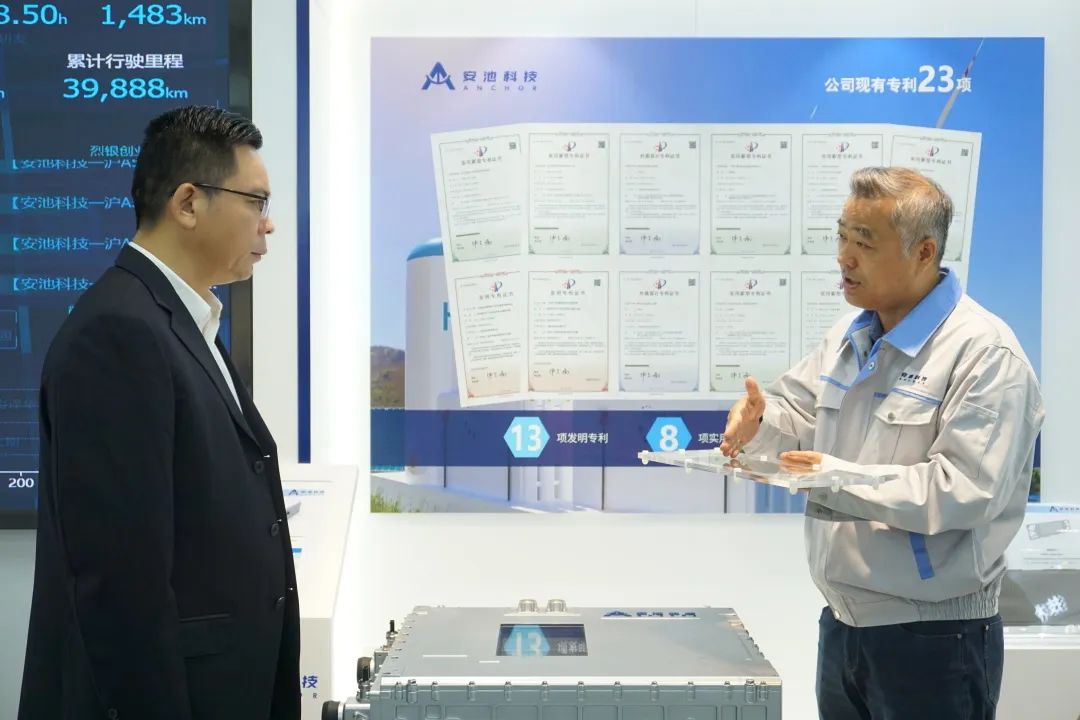 上海安池科技有限公司梁鐵強董事長攜各業(yè)務板塊負責人陪同參觀了公司展廳、性能檢測實驗室等產(chǎn)線裝備,雙方隨后圍繞在漳州高新區(qū)氫能產(chǎn)業(yè)的政策支持、技術創(chuàng)新、市場應用等問題進行了深入研討和交流。